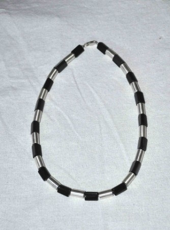 KETTE MIT DREIECKIGEN ONYXSTEINEN UND 925´SILBERROHR