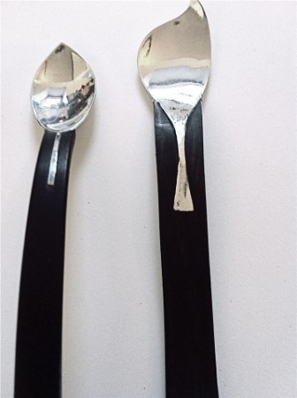 MARMELADENLÖFFEL UND NUTELLALÖFFEL, 925´SILBER UND EBENHOLZ
