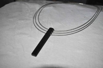 KETTE AUS DREI STAHLSEILEN MIT EINER EBENHOLZKLAVIERTASTE UND 925´SILBER